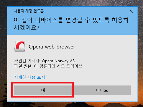 6. 사용자 계정 컨트롤이 뜨면 예를 띄워줍니다.