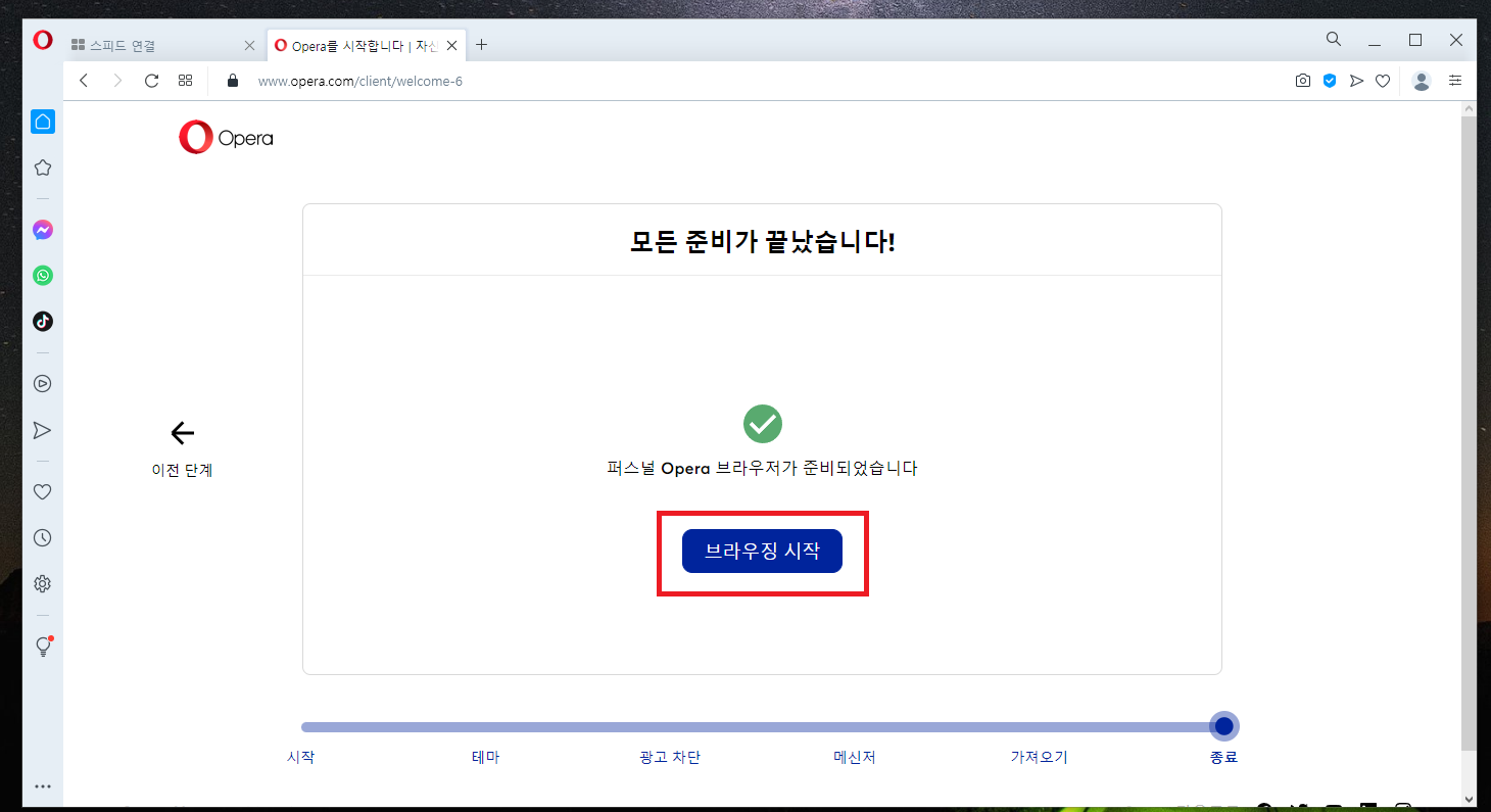 18. 오페라 관련 모든 설정이 끝났습니다.