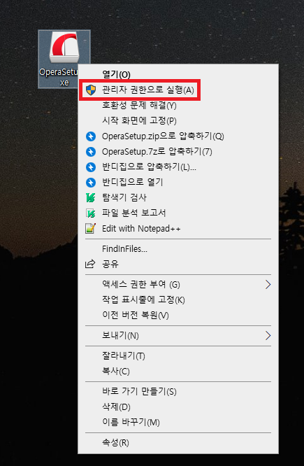 4. 오페라 브라우저 설치프로그램이 다운로드되면 위와 같은 파일이 생깁니다.