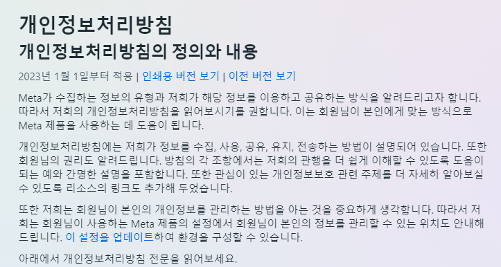 2023년 1월 1일부터 새로운 개인정보처리방침이 적용되었기 때문이죠.