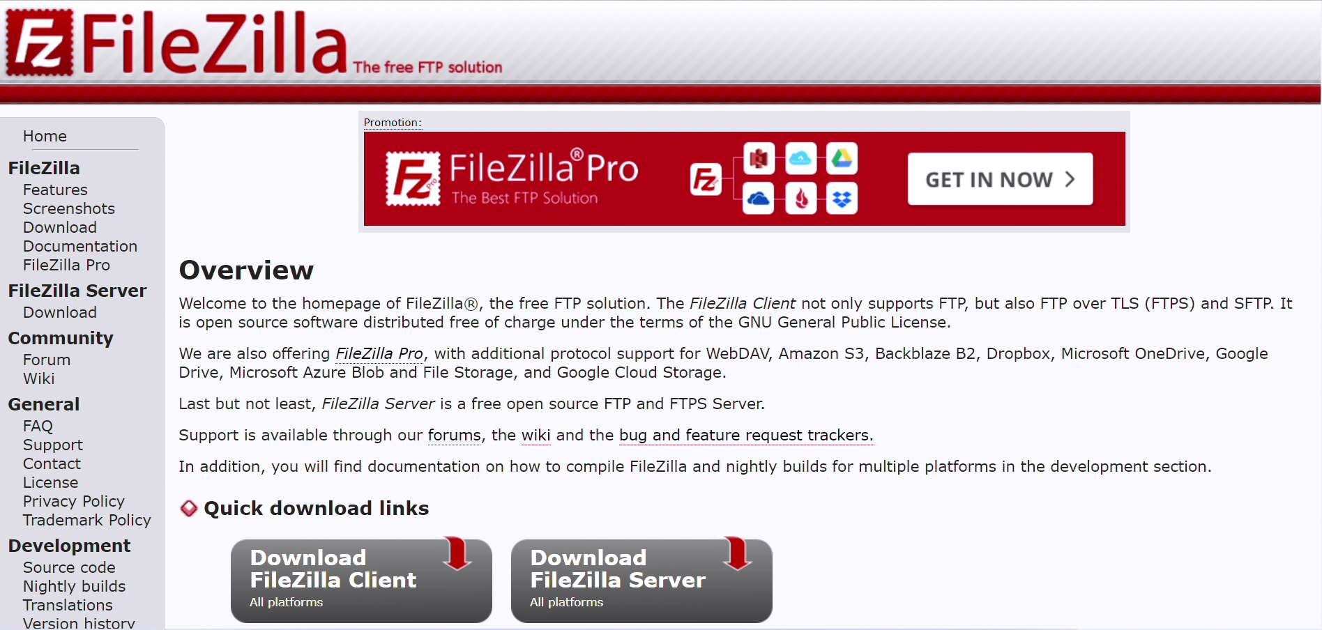 1. 위 링크를 클릭하여 파일질라 공식 사이트로 접속해줍시다.