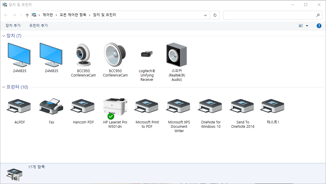 만약 이름이 안바뀐다면 F5키를 눌러 장치 및 프린터 창을 새로고침해줍시다.