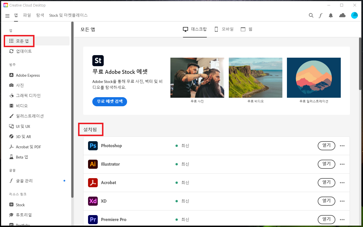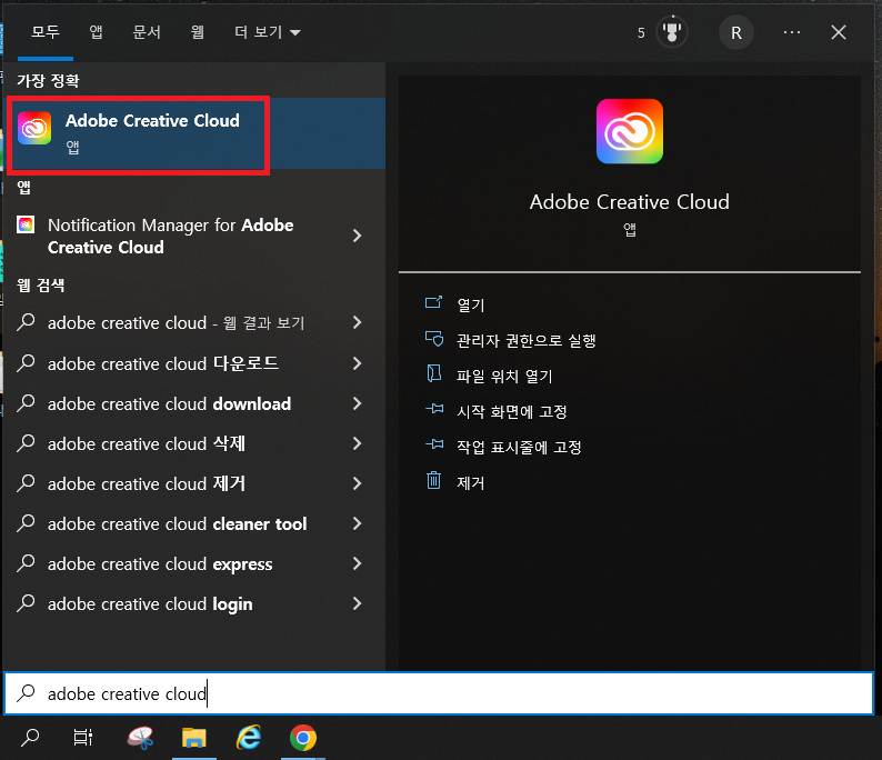 2. Adobe Creative Cloud 프로그램을 실행시키고