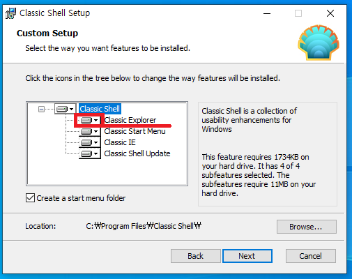 Classic Start Menu 빼고 Explorer나 IE는 설치 제외 해줍시다.