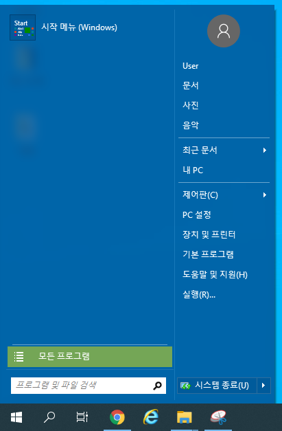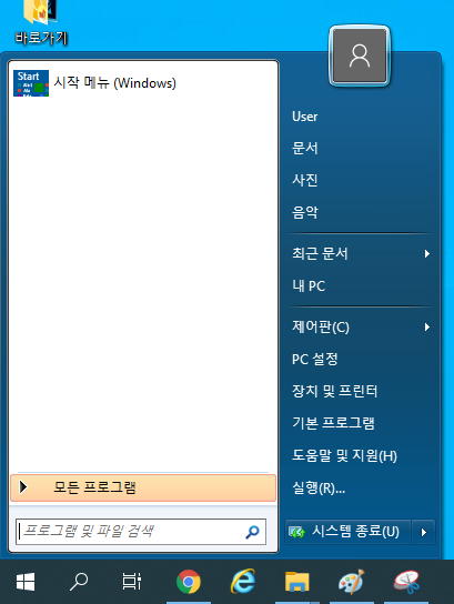 그럼 이제 시작메뉴는 윈도우7 스타일로 변경되었습니다.