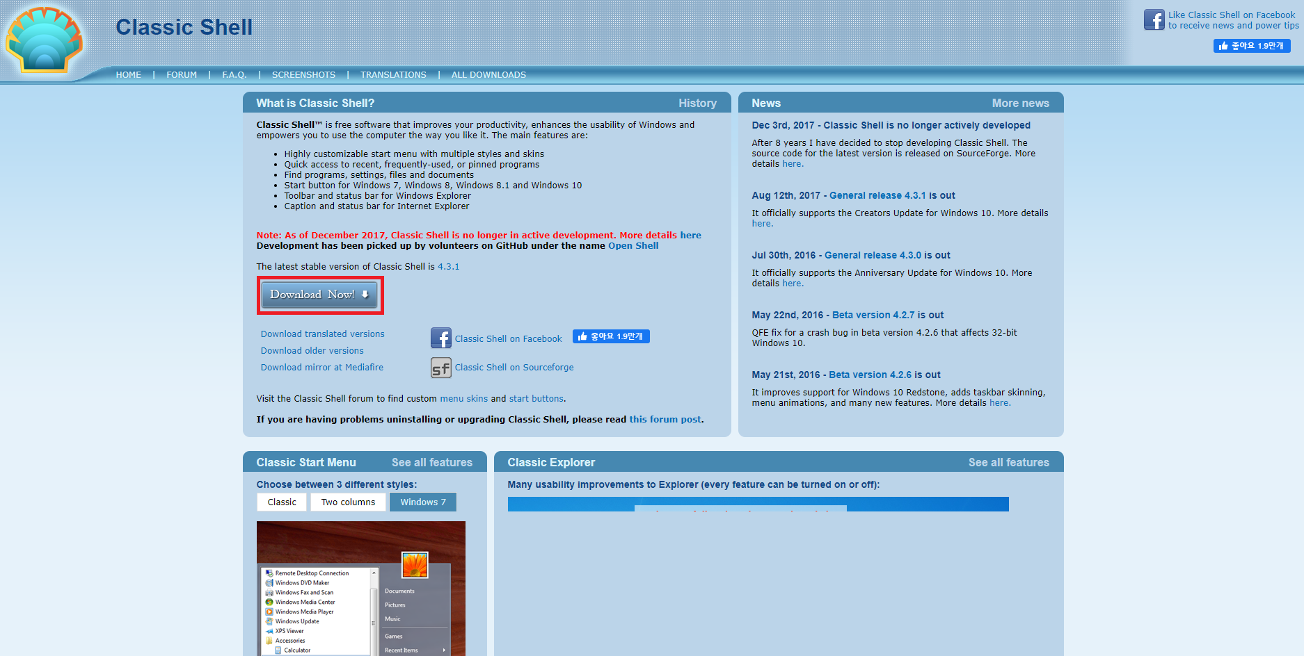 클래식 쉘 다운로드를 위해 아래 사이트로 접속합시다.