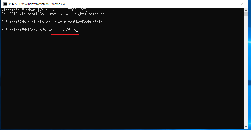 bpdown /f /v 명령어를 사용하여 넷백업 shutdown utility를 실행시킵니다.