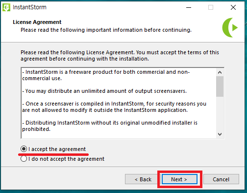 프로그램이 이상없이 실행되는지 Launch InstantStorm에 체크하시고