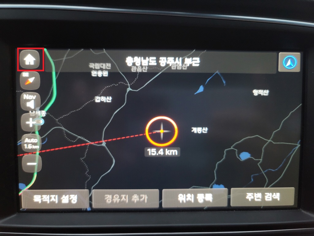 자동차를 시동 걸면 위와 같이 네비게이션이 표시되실 겁니다.