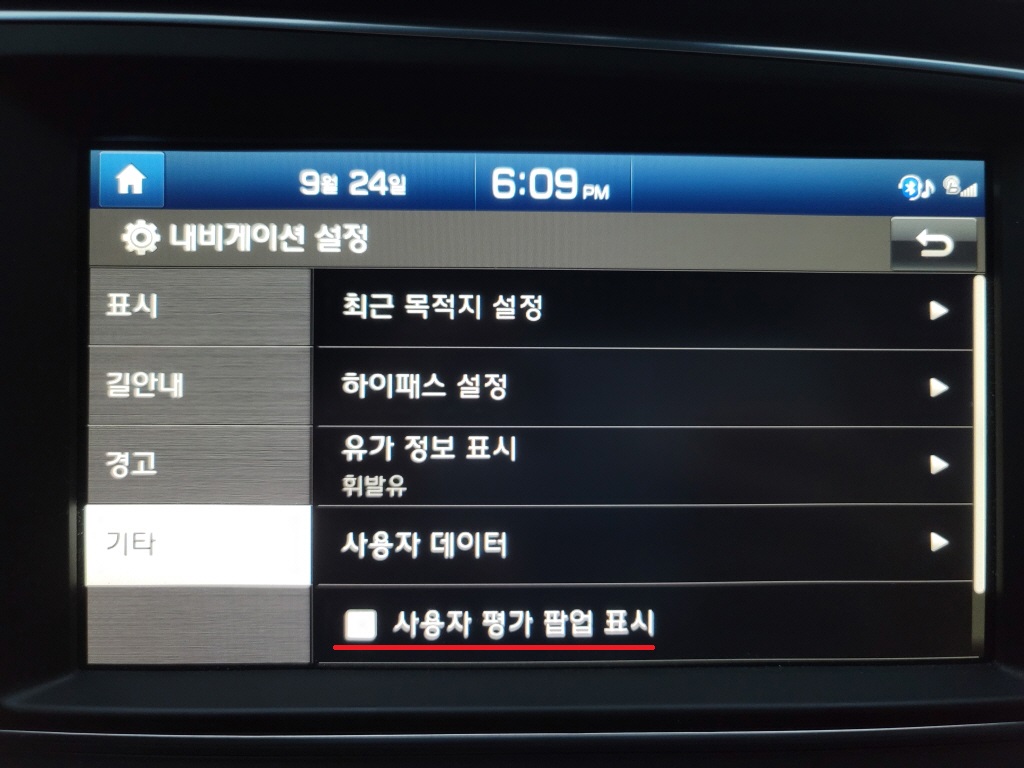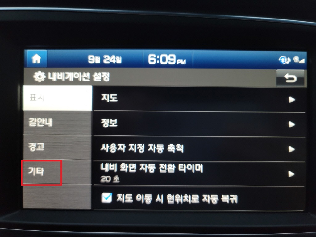 내비게이션 설정 > 기타 메뉴로 들어오게되면 위와 같이