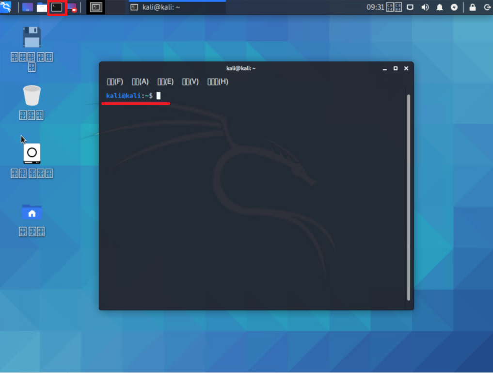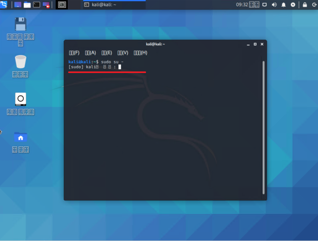 현재 접속하신 kali 계정의 비밀번호를 입력하시고 엔터를 눌러주세요.
