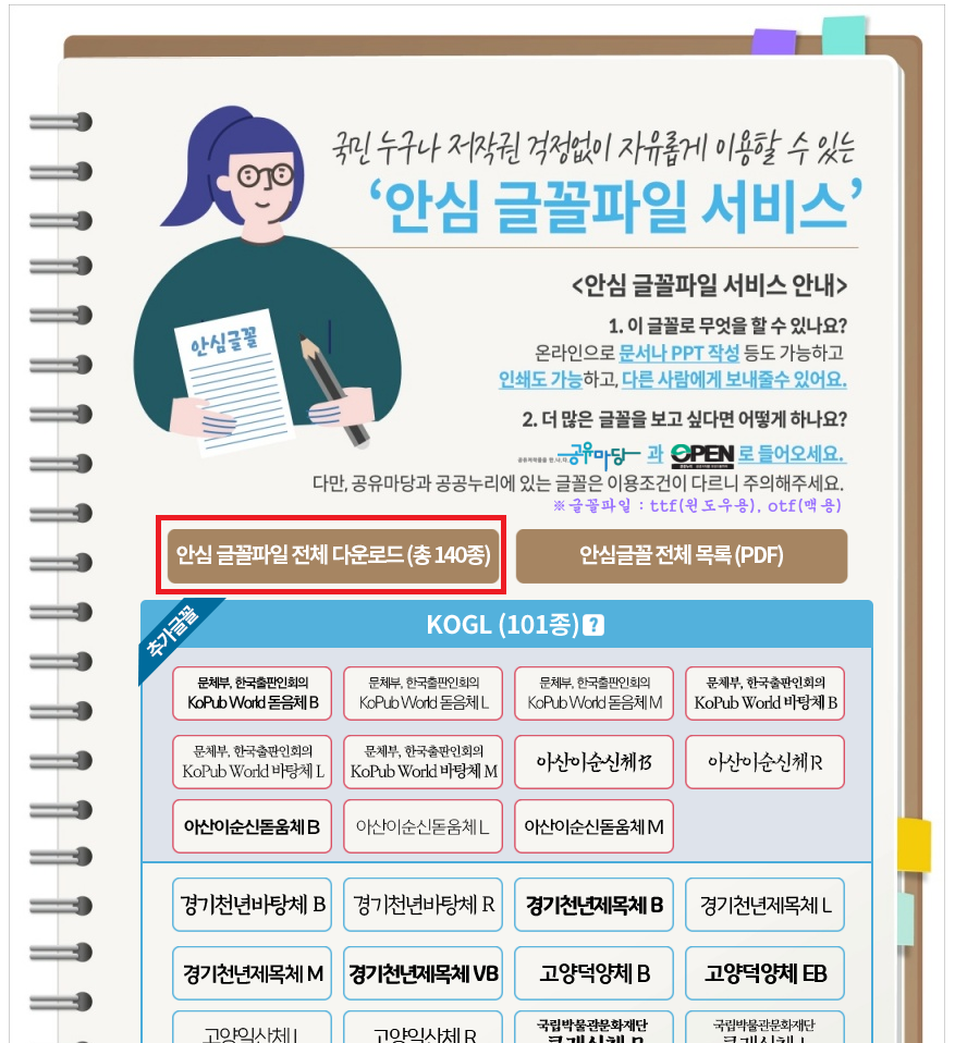 안심 글꼴파일(140종) 전체 직접 다운로드 링크는