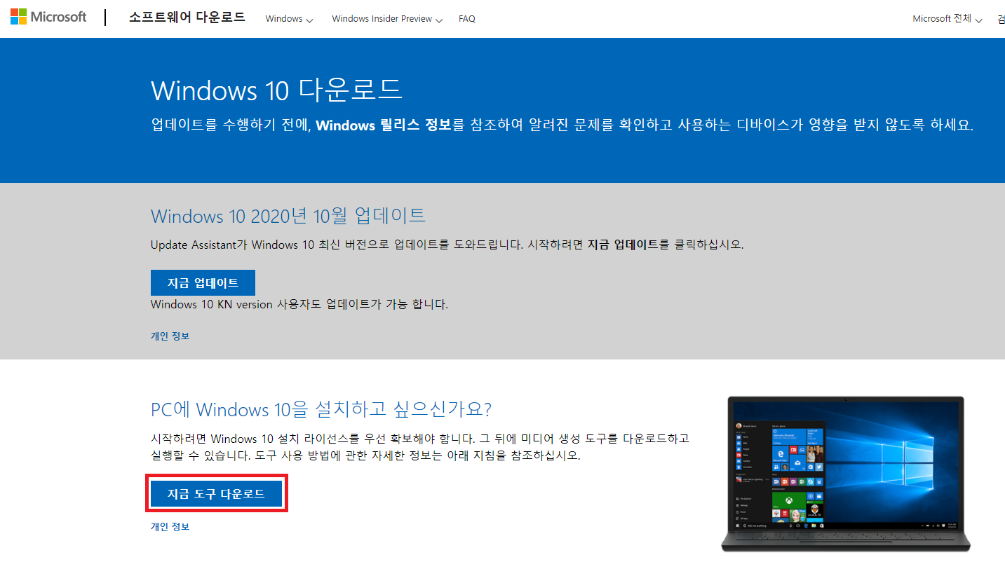 하단에 보시면 지금 도구 다운로드라고 적혀있는 버튼이 있습니다.