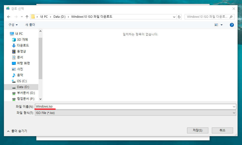16. ISO파일을 저장할 위치를 선택할 수 있는 창이 뜹니다.