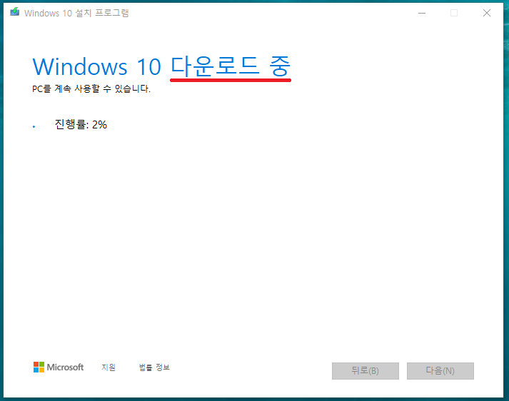 17. 이제 Windows10 다운로드를 기다립시다.