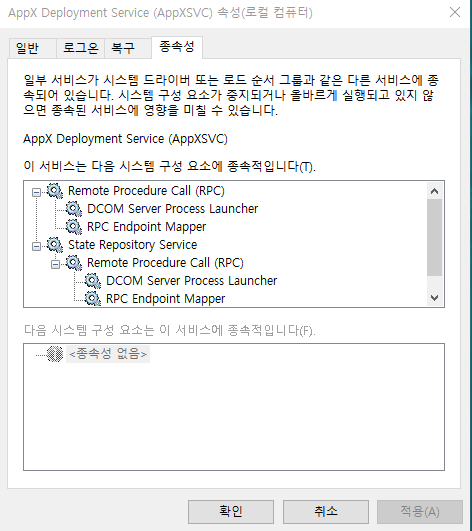 AppXSVC 서비스 실행을 위한 종속 서비스들 실행 시키기