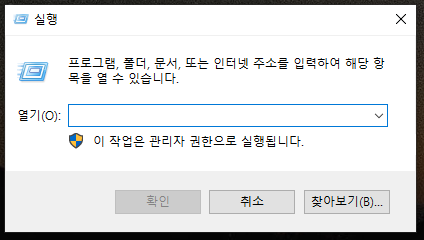 2. 바탕화면에서 윈도우 키 + R 을 키보드에서 누르시면 위와 같이 실행창이 뜹니다.