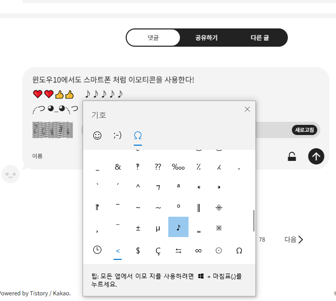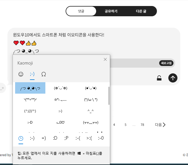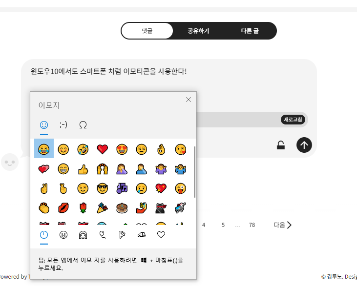 윈도우10에서 스마트폰처럼 이모티콘(이모지)을 사용해보자
