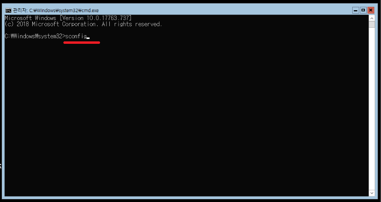 9. sconfig를 입력하고 엔터를 눌러주세요.