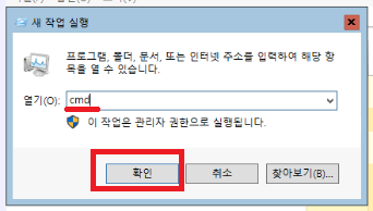 7. CMD 입력 후 확인 버튼 클릭