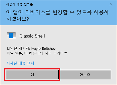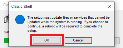 Classic Shell은 시작메뉴를 건드는 프로그램이므로 재부팅을 권장드립니다.