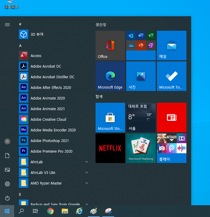 위와 같이 윈도우10 기본 시작메뉴로 돌아왔다면 정상적으로 삭제된 것 입니다.