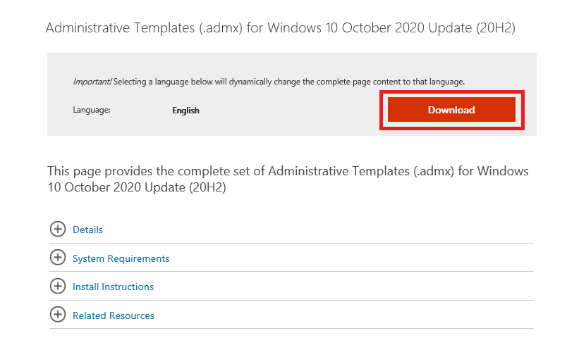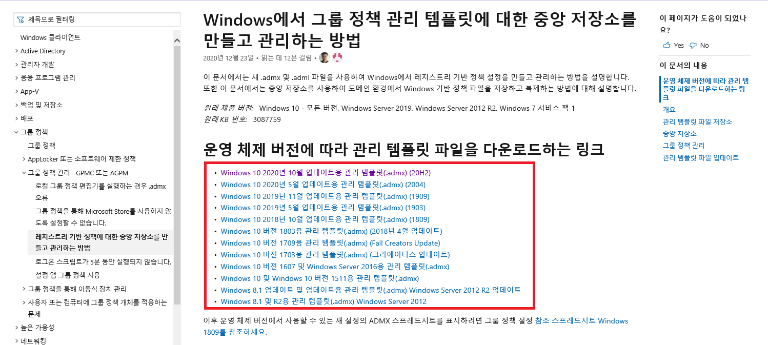 1. ADMX 최신버전을 다운로드 받기 위해 아래 주소로 들어가주세요.